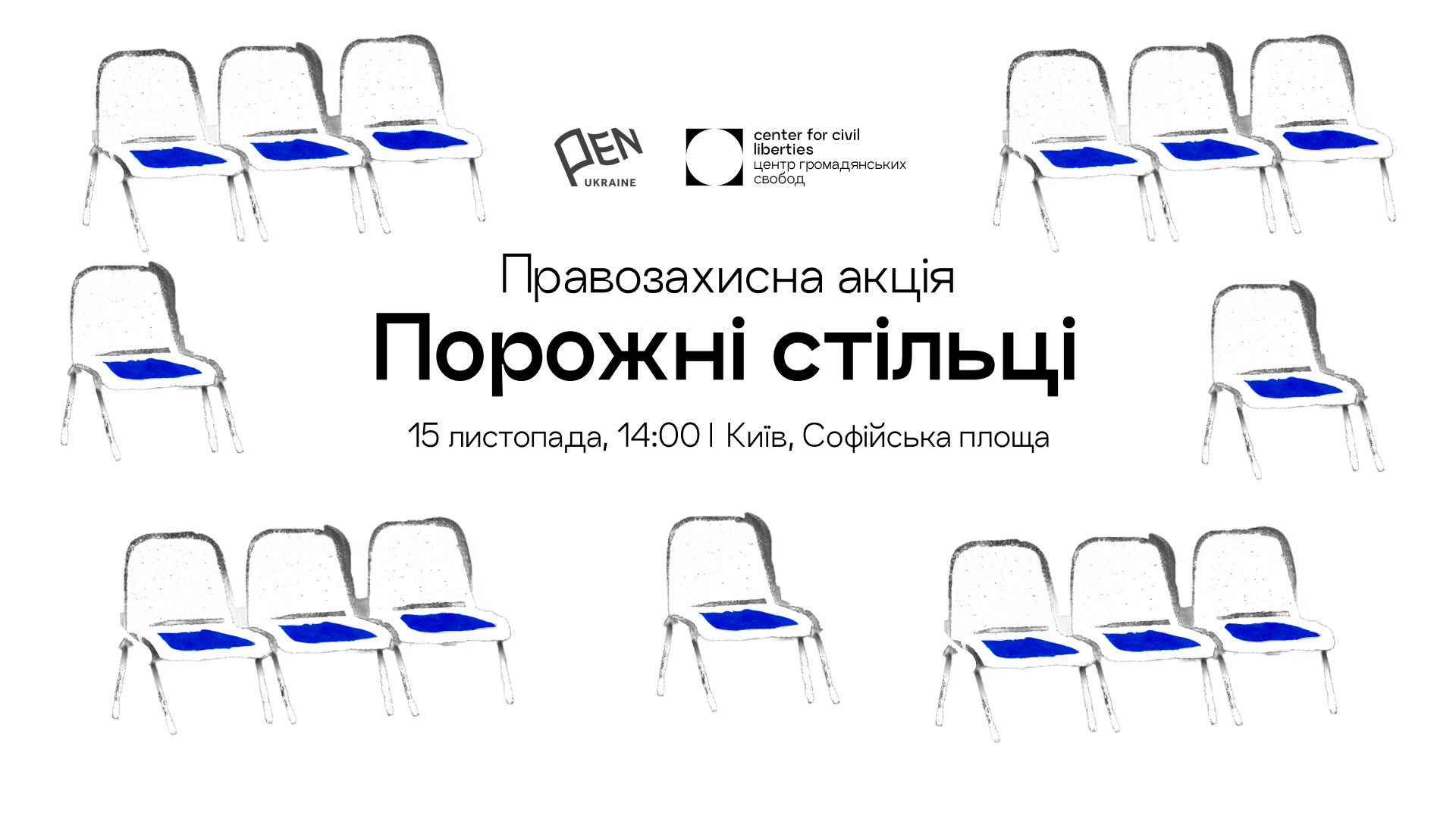15 листопада, о 14:00, на Софійській площі відбудеться щорічна правозахисна акція “Порожні стільці” на підтримку журналістів, письменників, діячів культури та правозахисників, що зникли безвісти, були ув’язнені чи перебувають у неволі через війну Росії проти України. Організатори події — Український ПЕН та Центр громадянських свобод.