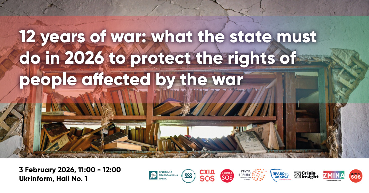 On 3 February 2026, the Coalition of organisations dealing with the protection of the rights of victims of armed aggression against Ukraine will present a Roadmap of draft laws and 17 priority steps in the field of human rights protection in the context of the armed aggression against Ukraine in 2026.