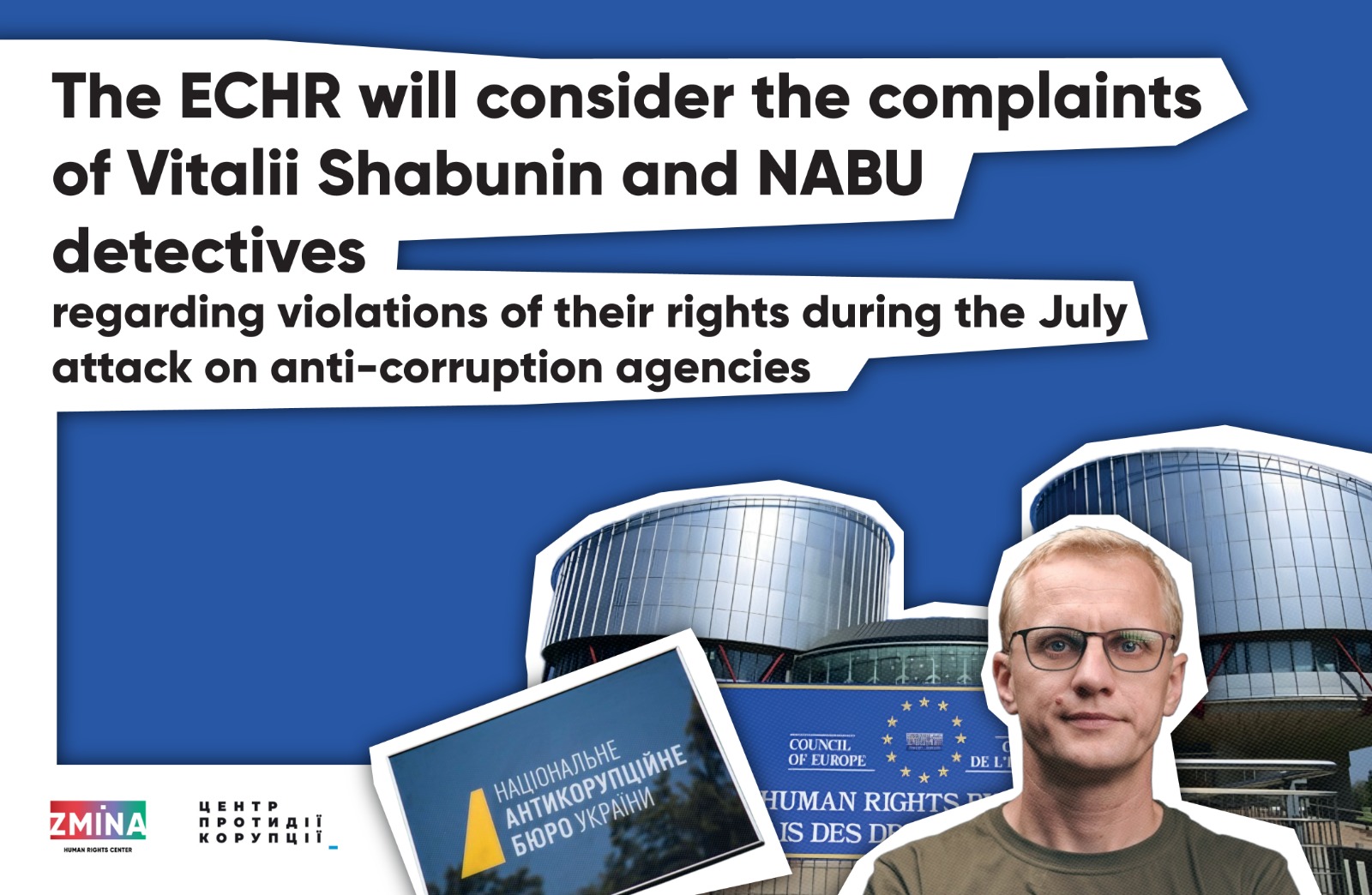 The European Court of Human Rights (ECtHR) has decided to examine the applications filed by Vitalii Shabunin and detectives of the National Anti-Corruption Bureau of Ukraine (NABU) regarding numerous abuses and violations during the July events involving mass investigative actions and attempts to bring anti-corruption activists to accountability.