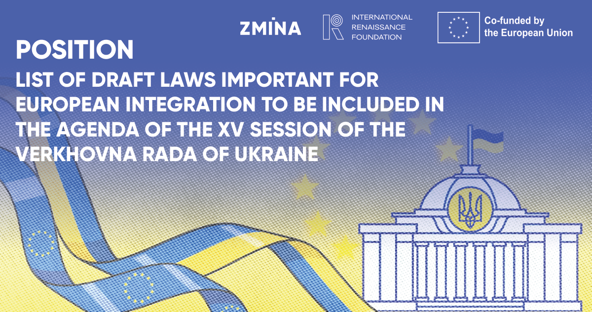 List of Draft Laws Important for European Integration to Be Included in the Agenda of the XV Session of the Verkhovna Rada of Ukraine — Position of Human Rights Defenders | ZMINA Human Rights Center