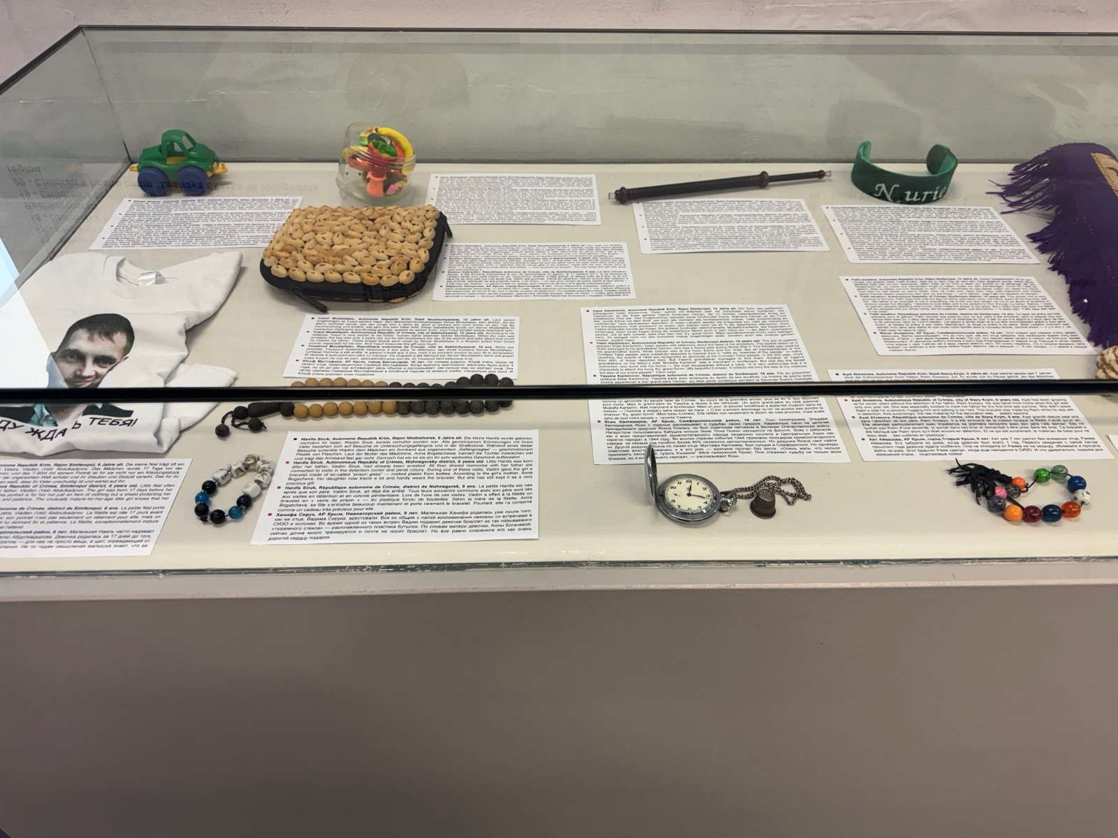 Окреме місце в експозиції займають особисті речі. Серед них — вервечка з хліба, яку кримський політв’язень Сервер Мустафаєв виготовив для свого сина. Такі предмети стають символами зв’язку, який зберігається попри роки розлуки.