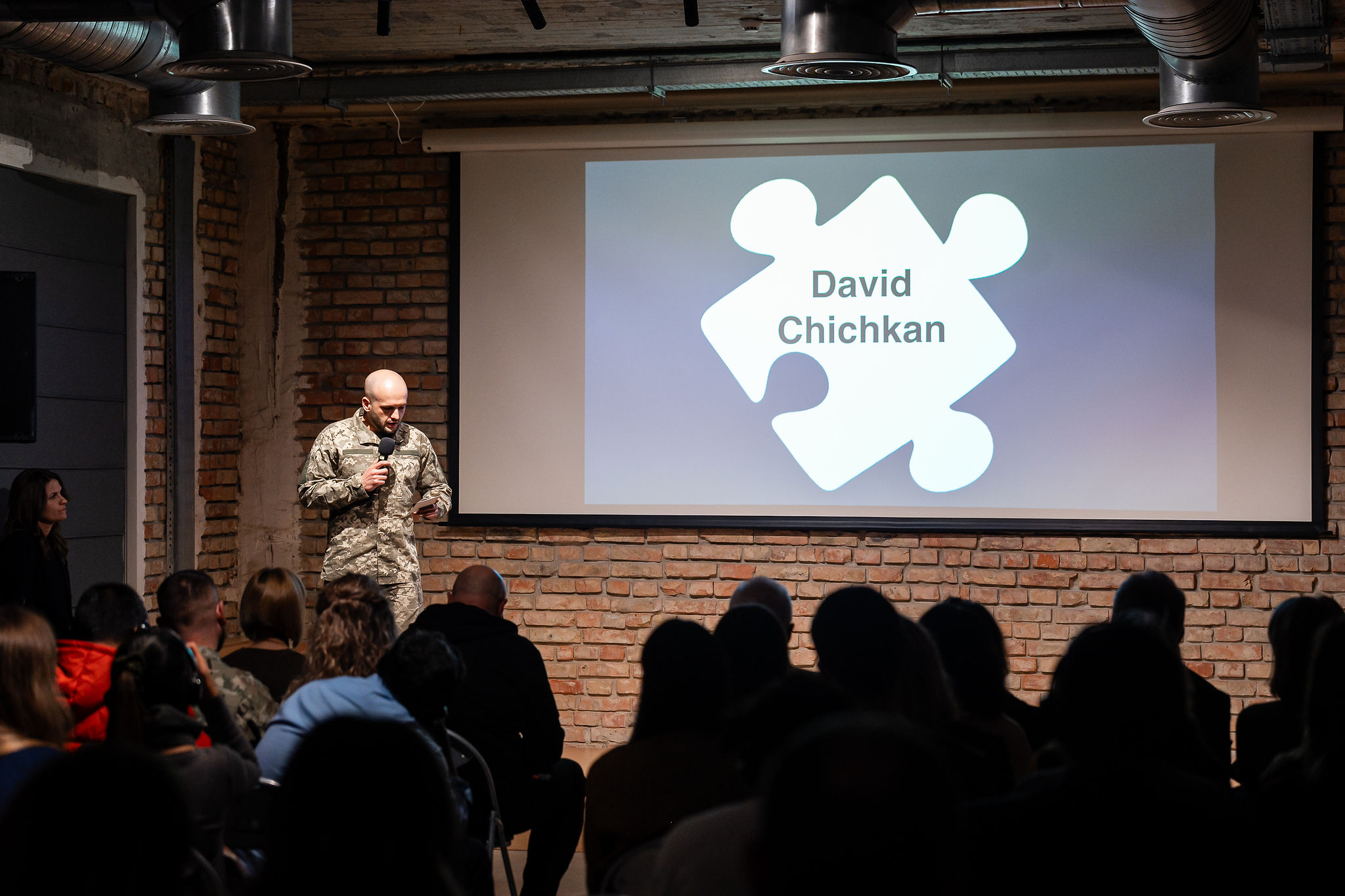 Глядачі почули фрагмент інтерв’ю Давида про мистецтво як форму політичної відповідальності. Зі сцени виступив його друг і побратим Ілля Власюк, який приїхав просто з фронту й говорив про понад двадцятирічну спільну боротьбу за свободу та справедливість.