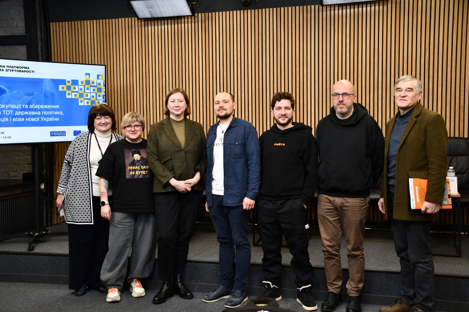 Валентина Потапова, Альона Луньова, Ольга Скрипник, Євген Бондаренко, Олег Саакян, Денис Чистіков, Володимир Лупацій27 лютого 2026 року у пресцентрі “Київінформ” відбулося публічне обговорення на тему: “Спротив окупації та збереження зв’язків із ТОТ: державна політика, реінтеграція і візія нової України”. Захід організували: Національна платформа стійкості та згуртованості та Український незалежний центр політичних досліджень (УНЦПД).