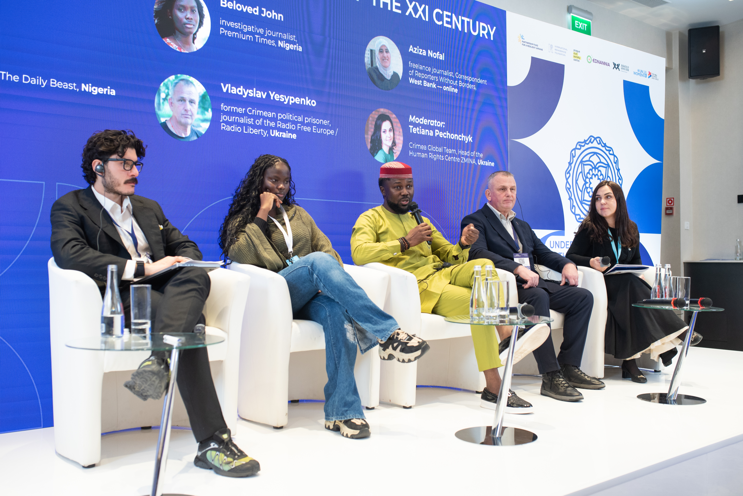 До панельної дискусії долучилися український журналіст Reuters Іван Любиш-Кірдей, генеральний директор і головний редактор NO PASA NADA П’єтро Серконе, журналістка-розслідувачка Premium Times Белавед Джон, кореспондентка Reporters Without Borders Азіза Нофал, кореспондент The Daily Beast Філіп Обаджі, колишній кримський політв’язень, журналіст “Радіо Свобода” Владислав Єсипенко.