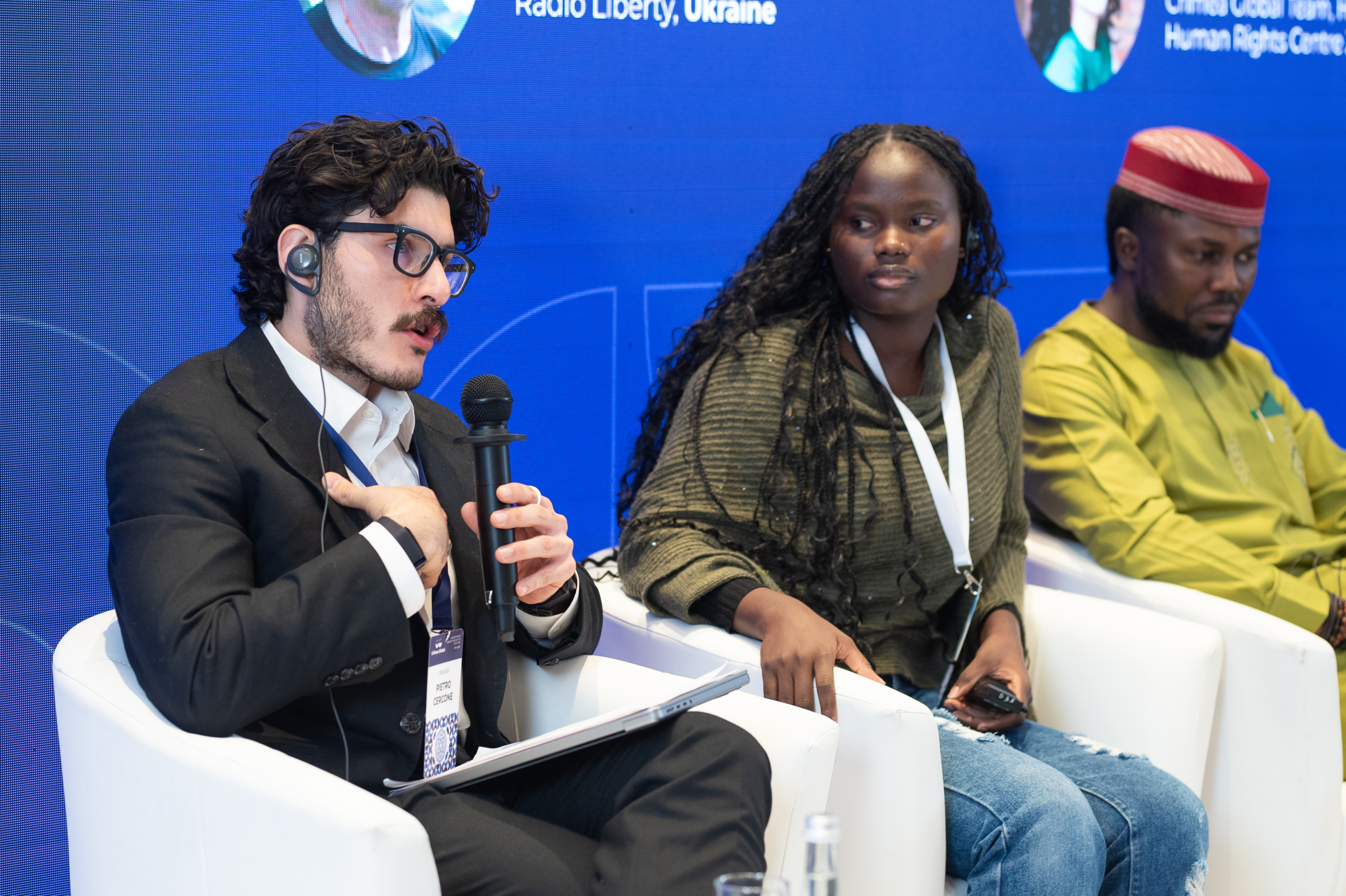 До панельної дискусії долучилися український журналіст Reuters Іван Любиш-Кірдей, генеральний директор і головний редактор NO PASA NADA П’єтро Серконе, журналістка-розслідувачка Premium Times Белавед Джон, кореспондентка Reporters Without Borders Азіза Нофал, кореспондент The Daily Beast Філіп Обаджі, колишній кримський політв’язень, журналіст “Радіо Свобода” Владислав Єсипенко.